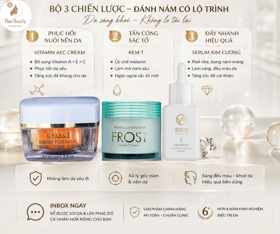 Quy cách: 1 kem Vitamin AEC 1 Serum Vital C Công dụng: dưỡng trắng hồng da hiệu quả, cung cấp dưỡng chất cần thiết cho da, chống lão hóa và chống oxy hóa vượt trội.